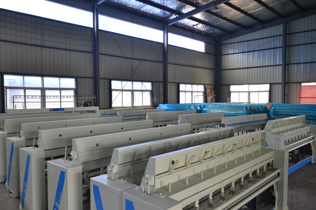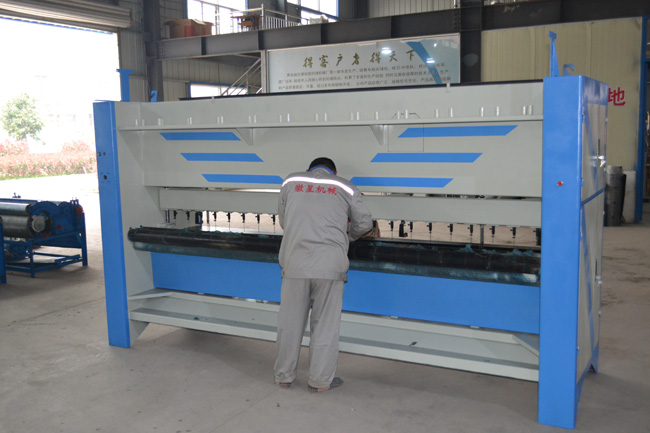質(zhì)檢部師傅師傅正在對(duì)大棚保溫被絎縫機(jī)做出廠質(zhì)檢