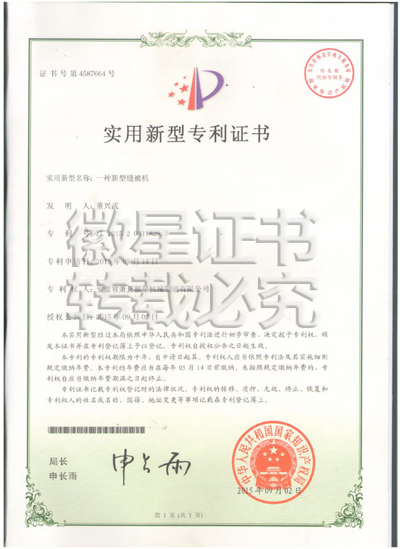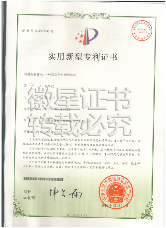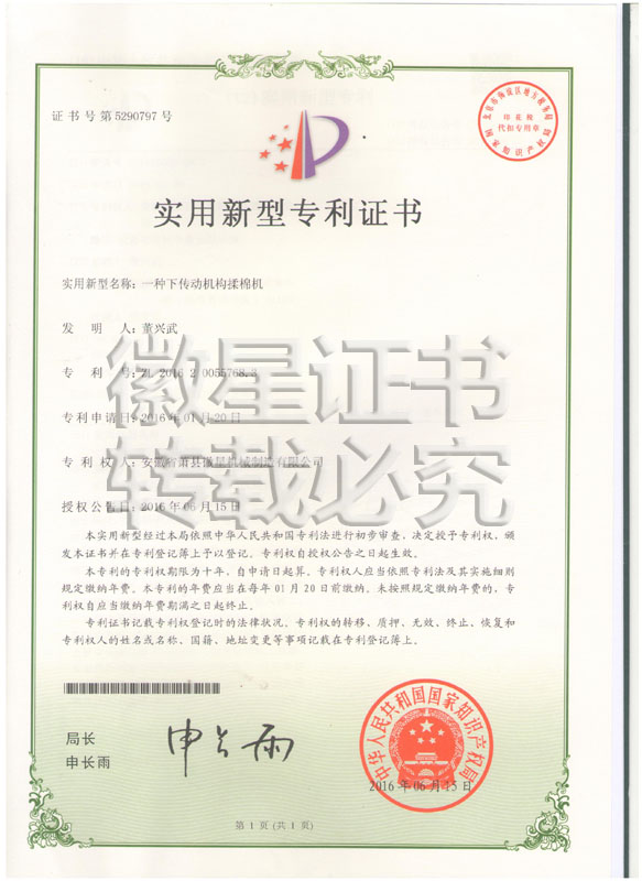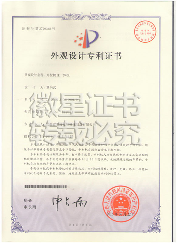 徽星人經(jīng)過20年的努力奮斗,經(jīng)過7000多個(gè)日日夜夜,在董興武先生的帶領(lǐng)下,打造優(yōu)質(zhì)品牌。徽星現(xiàn)已榮獲20多項(xiàng)國家專利,保證機(jī)器的質(zhì)量,認(rèn)客戶朋友們用上了放心機(jī)器!